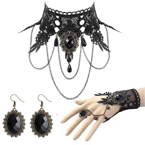 레이스 목걸이 귀걸이와 반지 세트 나이트 클럽을위한 섹시한 할로윈 메이크업 및 댄스 파티 액세서리 재미있는 패션 쥬얼리